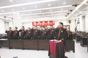 本报讯 “忠于中华人民共和国宪法,维护宪法权威,履行法定职责,忠于祖国,忠于人民,恪尽职守,廉洁奉公,接受人民监督,为建设富强、民主、文明、和谐的社会主义国家努力奋斗!”5月24日上午,周口中级法院隆重举行首批员额法官宪法宣誓仪式,全体员额法官身着法袍,面向国旗,举起右手,齐诵誓词。