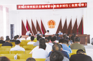 本报讯 近日,淮阳县检察院在朱集乡启动“扶贫领域警示教育乡村行”活动。该乡政府工作人员、各村党支部书记和各扶贫村第一书记200多人参加了该活动。