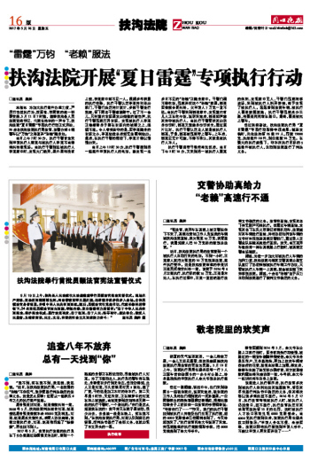 据悉,为进一步加大对被执行人车辆的扣押力度,扶沟法院与辖区交警高速公路支队签订了协助控制被执行车辆工作协议,只要被执行人车辆一上高速,就会被拦截下来并移送法院。据悉,十余名“老赖”迫于压力主动到法院履行了裁判文书确定的义务。