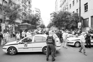 这是5月25日在希腊雅典拍摄的希腊前总理帕帕季莫斯车内邮件炸弹爆炸事故现场。