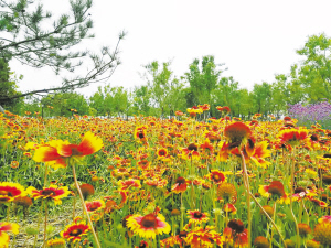 在马鞭草田东侧,5000平方米的天人菊艳丽无比。天人菊的花语和象征意义代表团结、同心协力。这也象征着只要周口人民同心协力,周口的明天一定会更好。