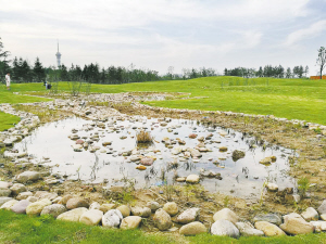 在项目郭埠口村段,周口晚报记者看到,戏曲长廊景观节点正在紧张地做着扫尾工作。这儿的景观设计采用海绵城市的理念,草坪内设计有雨水花园。