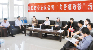 市公交总公司书记李航表示,今年周口公交要实现全国交通一卡通,购置一批10米以上纯电动汽车,启动沙北公交枢纽站建设,开展整治公交陋习、提升服务品质活动,提前备战省全运会等工作,任务繁重,责任重大,希望退休的劳模退而不休,发挥余热,继续关心支持公交发展,为公交发展献言献策;公交员工要结合自身实际,学习劳模优良作风,弘扬艰苦创业精神,争做文明公交人,当好周口人民的“专职司机”。市交通运输局相关领导希望公交员工,用劳模优秀品质引领风尚,埋头苦干,规范管理,提升服务,争当劳模,以优质服务迎接党的十九大胜利召开。