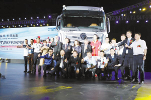 本报讯 5月24日,以“突破科技 引领未来”为主题的欧曼EST超级卡车登陆河南上市活动在郑州隆重举行(如图)。来自河南物流协会、福田戴姆勒汽车领导、超级卡车全球创新中心联盟成员代表、河南区域物流大咖以及媒体代表共同见证了福田戴姆勒汽车欧曼EST超级卡车的擎劲上市。自欧曼EST超级卡车正式登陆中国市场以来,福田戴姆勒汽车在北京、上海、珠海、安徽、山东、四川、广西等全国七大物流核心区域收获颇丰,创下了高端重卡新产品上市即热销5798台的行业佳绩,掀起了高端物流行业换代运输装备的热潮。