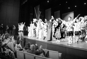 5月30日,在瑞士日内瓦,演员在大型舞剧《粉墨春秋》演出后谢幕。