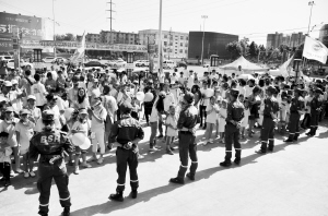 台上发言热情洋溢,台下参与者队列整齐、整装待发,领队者高举旗帜、信心百倍,全场市民欢呼雀跃、激情高涨,口号声如雷贯耳,丝毫不畏惧炎炎烈日,好一个声势浩大的场面!