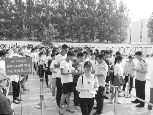 6月6日16时,全市各考点向考生开放,组织考生身份验证入场演练,提前熟悉高考流程,消除考生紧张情绪。