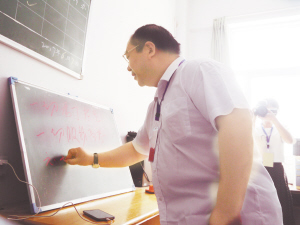 昨日,市委副书记、代市长丁福浩一行在市中心城区部分考点巡视高考工作。巡视过后,在远离考场的一块黑板旁,丁福浩拿起一支粉笔,在黑板上写下了对考务人员和考生的寄语“一切为了考生,一切服务高考,六·七、八,录取吧”!