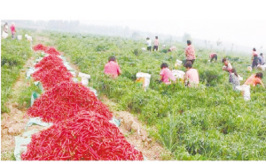 采访中,周口晚报记者发现一个奇怪的现象,沿途的村道两旁都摊晒着雨前刚刚收割的小麦,而周营村的道路两旁却干干净净。见周口晚报记者满脸疑惑,李建华解释说:“俺这里是乡政府所在地,耕地少,人均就那几分地,大都被我流转过来种辣椒了。许多村民从土地上解脱后,有的经商,有的外出打工,还有不少留守妇女在我的种植基地和加工车间打工。”