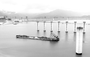 6月10日,船舶经过三峡大坝上游引航道。