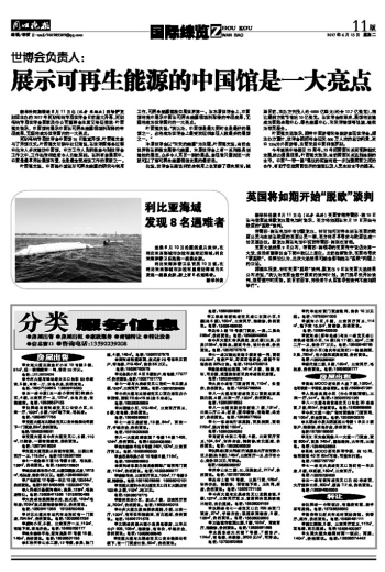 展示可再生能源的中国馆是一大亮点