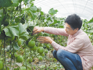 “自从在联帮农业种植合作社上班后,一天至少有百八十块钱的收入,不出远门就有钱挣,还可以照顾家,上哪儿找这么好的事儿呀!”周营乡李楼营村留守妇女刘花一边在大棚里采摘甜瓜,一边对周口晚报记者说。