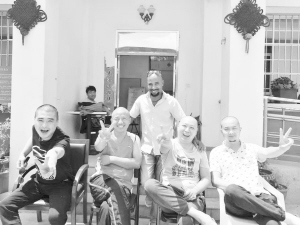 一日,为了给大家一点新鲜感,也为了找一点大家感兴趣的事,我提议——我带头理个光头,愿意的理完以后集体合个影,抓住在非洲的难得理光头的日子。谁知一提议,大家积极响应,第一天就有四人响应。由我们的美女特级理发师淑敏“操刀”,看他们的合影,多英武!!