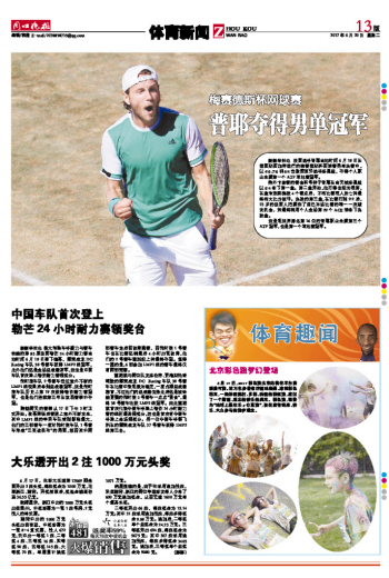 据新华社电 极大考验车手毅力与赛车性能的第85届法国勒芒24小时耐力赛当地时间6月18日落下帷幕,耀莱成龙DC Racing车队38号赛车获得LMP2组冠军,此外他们还是全场总成绩亚军,这也是中国车队首次登上勒芒耐力赛领奖台。