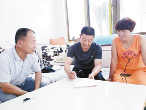 6月13日,周口晚报记者来到刘娟家时,看到康建成、党冯村村委会主任陈红善和刘娟正在筹划如何扩大苗圃种植面积。