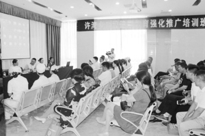 近日,周口口腔医院组织口腔健康教育宣讲团为60多位来自东新区许湾乡各村的口腔健康促进宣传员进行集中培训。图为培训现场。