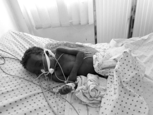 每次到ICU查房,看到那个五岁的儿童,我就心疼。上周刚死掉一个六岁的患AIDS的儿童。这个病床似乎是为埃塞艾滋病儿童准备的,一个接着一个。我们医疗队到提露内丝-北京医院工作快十个月了,光ICU收治的艾滋病儿童就有六个,更不要说成人了。因为我监管着医院的ICU病房,从日常工作来看,我感到ICU病房的医护人员的救治能力不强,所以我不放心这些个危重病人,想为他做点啥。