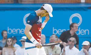 当地时间6月20日,英国选手穆雷在比赛中。当日,在2017年女王俱乐部草地网球赛男子单打首轮比赛中,英国选手穆雷以0∶2不敌澳大利亚选手汤普森,无缘下一轮。