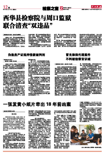 本报讯 近日,西华县检察院刑事执行检察局与周口监狱联合开展“双违品”专项清查活动。周口监狱党委委员、副监狱长袁新军,西华县检察院刑事执行检察局副局长梁敏、干警吴晓新及周口监狱六科室负责人参加了此次活动。