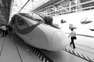 当日,由中国铁路总公司牵头组织研制、具有完全自主知识产权、达到世界先进水平的中国标准动车组被命名为“复兴号”。“复兴号”将于6月26日在京沪高铁两端的北京南站和上海虹桥站双向首发。新华社记者 鞠焕宗 摄