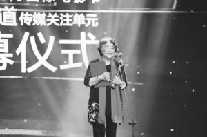 传媒关注单元评委会将“特别荣誉”授予了79岁高龄的著名表演艺术家祝希娟,她主演的电影《大雪冬至》也入围传媒关注单元。祝希娟当晚身披玫红色围巾,几乎是小跑着登台领奖。“55年前,我在北京舞台上领取了第一届百花奖最佳女演员奖,没想到今天我能在我的第二故乡——上海的舞台上收获这么大的荣誉。”随后她开心地说,“虽然我已经快80岁了,但我的心愿是今后还能在银幕上与最爱的观众多多见面,展现我的演技。”