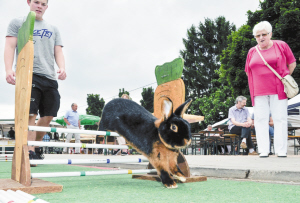 当地时间6月18日,德国举办兔子障碍赛。欧洲的养兔爱好者为兔子创造出一种全新的有趣运动,兔子障碍赛于八十年代早期在瑞典被发明。这项运动现已传到其他欧洲国家、美国、加拿大、甚至是日本。兔子障碍赛各地的比赛规则各异,但是通常来说,兔子跳过的障碍越多,得分也越高,有些比赛还有时间限制。