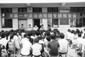 本报讯 为提高广大青少年的法律意识,增强安全防范和自我保护能力,近日,项城市司法局李寨司法所到李寨镇一中开展法治进校园宣讲活动(如图),李寨镇司法所所长张继伟以身边的具体案例对学生进行防溺水、交通、意外事件等安全教育。