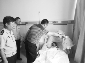 6月28日下午,市交警支队负责人看望慰问了小梦丽,为她带去了玩具和食品(如图)。