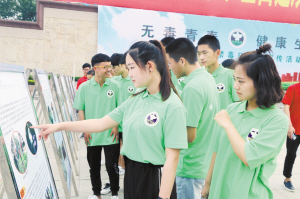 本报讯 今年6月26日是第30个国际禁毒日,为深入推进周口市禁毒宣传教育工作向纵深开展,掀起全民禁毒宣传活动新高潮,6月26 日上午,周口市公安局联合周口市禁毒委、共青团周口市委、市卫生局、市食品药品监督管理局等20多家单位,在川汇区五一文化广场举行了以“无毒青春、健康生活”为主题的“6·26”国际禁毒日大型宣传活动。周口市委副书记、市政法委书记、市禁毒委主任李德才,周口市副市长、市公安局局长、市禁毒委常务副主任王平等领导以及市禁毒委员会成员单位代表、公安民警、禁毒志愿者、学生和社会各界群众参加了活动。