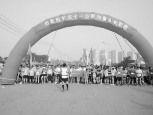 6月30日上午,我市举行“喜迎十九大‘七一’环沙颍河”长跑比赛。比赛分5公里跑和10公里跑两个项目,吸引了我市近80家单位的1500多人参加。比赛起点设在市体育中心南门。10公里跑的路线是,从市体育中心南门出发,往东到武盛大道桥后转折至河提,然后到市体育中心南门终点。5公里跑的路线是,从市体育中心南门出发,往东至武盛大道。晚报记者 郭坤 摄