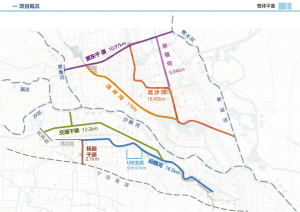 本次河道治理工程主要包括水利工程、截污工程、桥梁工程、生态景观工程。水利工程将重建节制闸5座,新建液压坝2座,新建防洪闸和排涝泵站1座。截污工程将新建截污管道约13500米,新建一体化污水处理设备4座。桥梁工程拟新建、重建和改造桥梁48座。生态景观工程通过生态景观建设,提高居民生活品质,提升城市景观。根据相关上位规划,结合周口历史文化和民俗艺术,合理设置文化景观节点,串联河道景观空间。全段设置连续的自行车道、人行步道等慢行系统供居民休闲锻炼,主要景观节点设有码头,供居民乘船游乐。