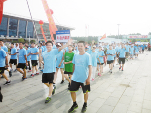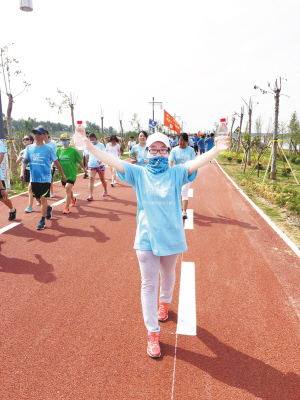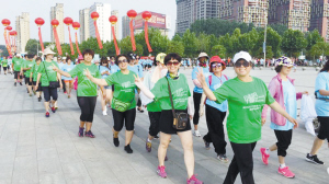 当日8时许,周口晚报记者在活动现场看到,身着统一服装的市民在引导员的指引下排队等候。出发号令响起后,大家排队走出市体育中心大门,来到风景秀美的沙颍河畔。当日参加活动的不但有年轻人和老人,而且还有带着孩子的年轻夫妇。