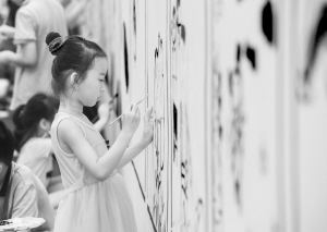当日,浙江省湖州市吴兴区织里实验小学教育集团和织里镇中心幼儿园的教师志愿者带着孩子们共100多人,拿起画笔在大港路文明墙上描绘美丽家乡织里镇的人文风景。