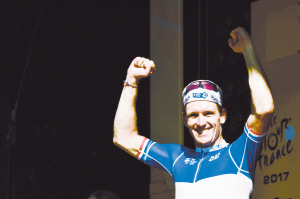 对于萨甘而言,第104届环法赛事犹如一次曲折之旅。一天前的第三赛段中,他在终点前几百米处出现右脚从脚蹬滑落的失误,不过沉着冷静的他还是拿到生涯第八个赛段冠军。一天后又是在终点线前,他以一种争议的方式结束了今年环法征程。