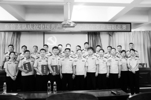 为庆祝中国共产党成立96周年,深入推进“两学一做”学习教育常态化、制度化,迎接党的十九大胜利召开,6月29日下午,市公安局监管支队举办了庆祝建党96周年党建知识竞赛。该支队6个党支部组成6支代表队参加了比赛。市公安局党委委员、副局长王干志,市公安局监管支队支队长马清臣,市公安局政委常高峰等领导与部分民警一起观看了比赛。比赛开始前,出席活动的领导还对该支队9名困难党员进行了慰问。通讯员 贾明军 摄