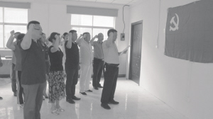 一是重温入党誓词(如图)。全体党员在党组书记、局长张照冰的带领下,面向党旗,重温入党誓词,进一步坚定全体党员的信念,牢记党的宗旨,增强党组织的战斗力和凝聚力。
