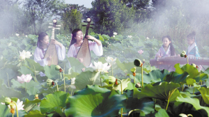 当天上午,周口晚报记者在开幕式现场看到,不少外地游人纷纷用手机拍下开幕式盛况,并随手发至微信朋友圈晒图。从羲皇文化广场亲水平台处放眼万亩龙湖,早已是游船荡碧波,笑语飘满湖。眼下,置身万亩龙湖之中,荷花或含苞待放、清香四溢,或娇艳欲滴、婀娜多姿。更有爱莲者走进荷花丛中,或怀抱琵琶、或轻抚古筝,十里荷香伴着袅袅琴音,浓浓的陈风荷韵扑面而来。