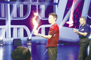 当天,撒贝宁和尼格买邀请了两位科学顾问曹则贤、张双南一起“玩火”,他们将肥皂泡沫水涂抹在防火手套上,之后点燃上演“火云掌”。撒贝宁还现场抛出了问题,用蜡、防晒霜和水涂抹在手上点燃,哪种材料不会伤手。科学顾问曹则贤、尼格买提亲自为观众验证,科学的力量让手掌在熊熊大火中毫发无伤。