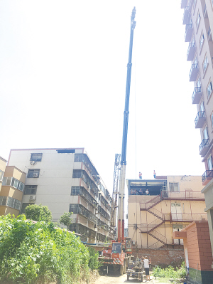 这一违章建筑位置十分隐蔽,城管队员巡查至这里时,在楼与楼之间的间隙中发现一辆吊车,初步推断这里正在实施违建。“宾馆的临街楼楼层较高,后面的楼房楼层较低,违章建筑就建在后面楼房的楼顶,站在路上不易发现那里的情况。城管队员进入与宾馆相邻的小区后,发现这处违章建筑明显是刚搭建起来的,工程并未完工,如果建成,还可能会对楼体带来安全隐患。”韩亚辉说,这个宾馆虽已建好十多年,但翻建房屋也需要有规划许可证。