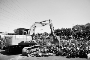 当日,哈尔滨市交警支队开展交通大整治行动,2800余辆非法营运的“黑车”、“港田车”、“残疾车”等扰乱市场秩序的违法摩托车被集中销毁。