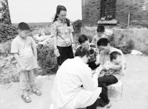 7月12日上午,王凯伟带着刘红粉一行,来到西华县迟营乡石坡村小梦丽的家,为小梦丽及其弟弟、爸爸、妈妈采集了血样(如图)。临走时,刘红粉还塞给小梦丽300元生活费。