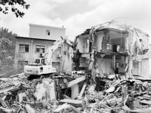 本报讯 7月12日,川汇区组织公安、城管、巡防、安监等部门,连同人和办事处组成300多人的联合执法组,对大庆路桥北头西北角一处三层违建实施强制拆除(如图)。