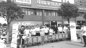 活动当天,平安人寿周口中支各网点也举行了“远离贫困,从一份保障开始”公益活动。他们在户外设置展台,邀请客户和居民参加,耐心介绍保险产品,提高公益扶贫意识。