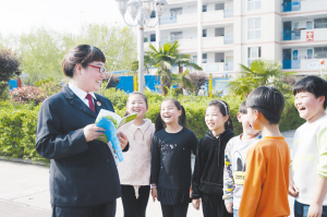 为加强对中小学生的法制教育,太康县检察院未检办的检察官在学生放暑假之前走进校园,以浅显易懂、喜闻乐见的方式向中小学生普及法律常识。通讯员 郑亮 摄