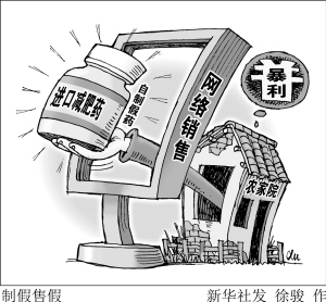 在减肥圈,“舒立轻”是一款知名度极高的减肥药,全英文的说明书,产地标注为德国,一些减肥达人昵称其为“小舒”。谁能想到,这样一款“高大上”的减肥药,竟出自偏远村落脏乱的农家小屋里。新华社发