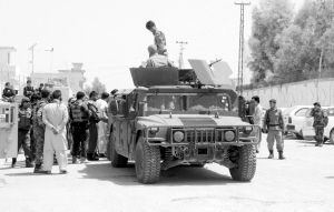 7月22日,在阿富汗南部赫尔曼德省的格里什克地区,阿富汗军车停在美军空袭地点附近。