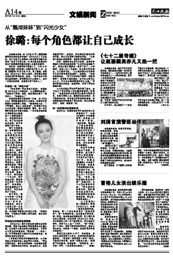 从《红楼梦》到《甄嬛传》再到《闪光少女》,徐璐一路走来都很幸运,但她说,每一个角色都是自己“试戏试来的”。每一次遇到好戏,她也都会尽量争取,每一部戏,她也都会找表演老师,努力提升自己的台词功底。这次凭借《闪光少女》拿奖,似乎是演技上的一次飞跃和肯定,但在她自己看来,没有什么人会一飞冲天,“每一部戏、每一个角色,都有不同的体验和经历,都会让自己成长。拿奖是一个鼓励,还会有更好的进步的空间。”