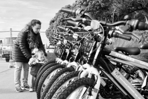 7月23日,在新西兰首都惠灵顿,一个孩子观察共享单车。