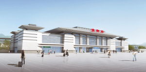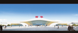 站房整体设计以“舞韵西华”为主题,融入女娲飞舞时的优美身姿,造型柔美灵动,整体采用两侧形体承托屋顶的造型形式,表现承托感、力量感,契合西华当地丰厚的历史文化底蕴。