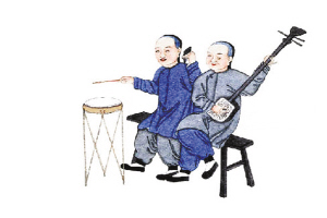 “大辫子”见全场人纹丝不动,不肯散去,连吸两支烟,一碗白开水一饮而尽。只见她站起身,打起简板、敲起鼓唱道:“小鼓一敲响叮咚,诸位稳坐书场听我哼。开言不把别的唱,哼个小段《恶媳妇》。你只要听中我的唱,我愿哼到大天明……”